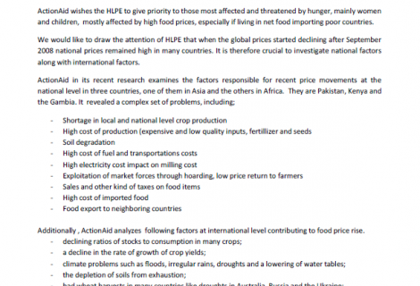 ActionAid Contribution to the CFS High Level Panel of Experts (HLPE) ToRs for the Study on Food Price Volatility 5 February 2011 Downloads