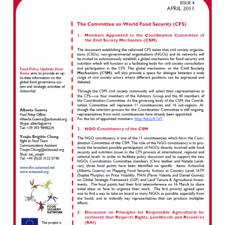 Food Policy Update from Rome- Issue 4, Apr 2011